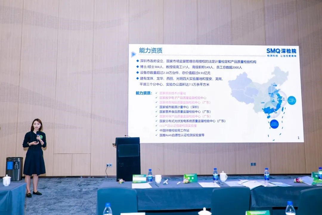 作《生物降解塑料相关标准与检测方案》报告,丁琪琪博士向大家分享了SMQ深检院的能力和资质,进行了生物降解材料及相关标准的解读,向大家介绍了深检院在塑料材料检测方面的一站式服务:生物降解率检测、高分子材料成分分析、高分子材料一致性对比等。