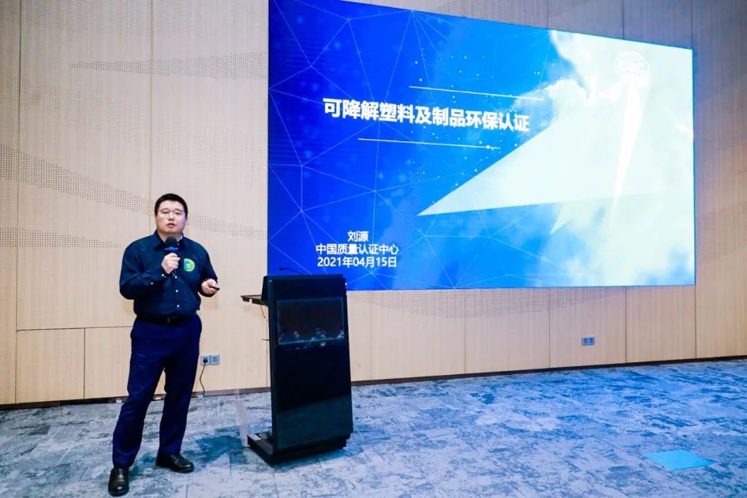 作《可降解塑料制品认证流程及要求》报告,刘源部长首先向大家简要介绍了认证中心的机构情况,后就认证中心的环保认证方案进行了详细介绍,如认证适用范围、认证模式、认证申请、检验检测、工厂检查和证书出具等。