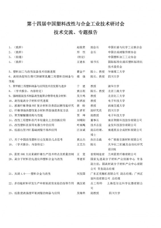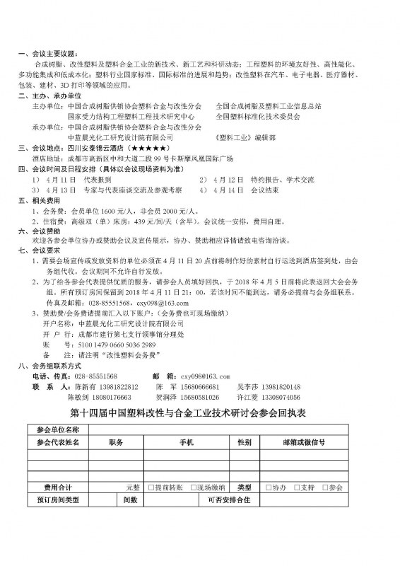 关于召开第十四届中国塑料改性与合金工业技术研讨会