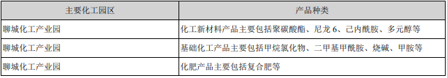 主要化工园区的产品种类情况