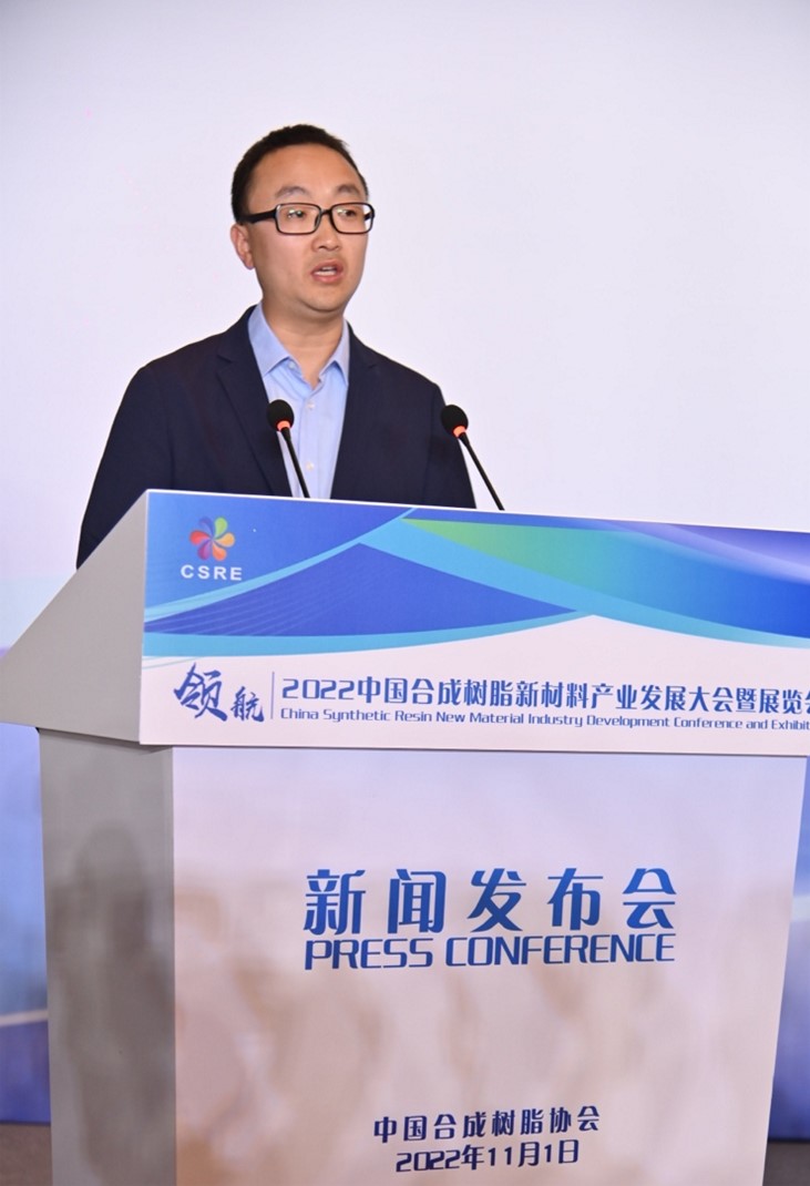 何翔介绍了本届展会规模20000余平米,分为合成树脂各行业领先企业展区;专精特新未来之星展区;知名新材料产业园等区域。