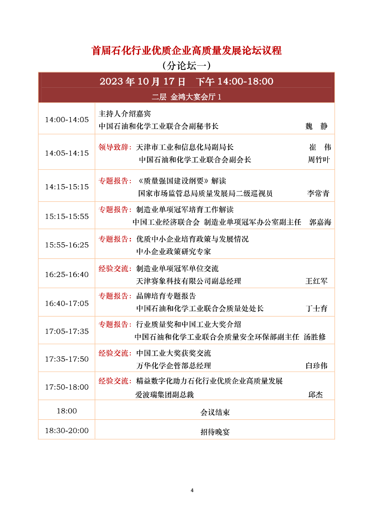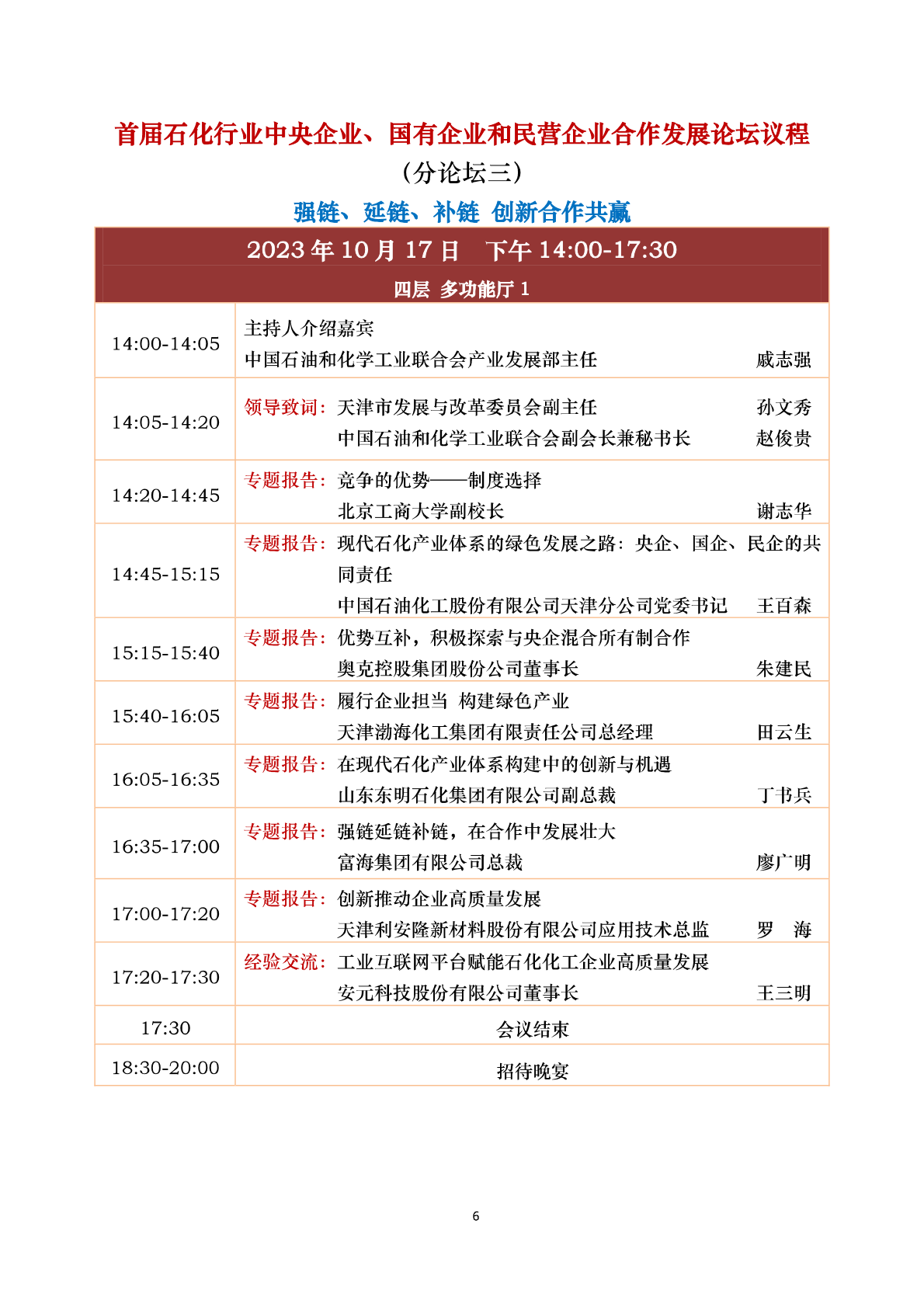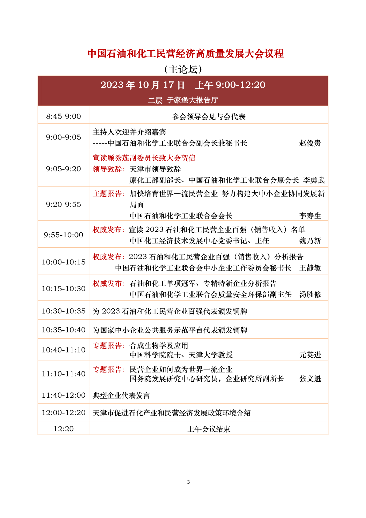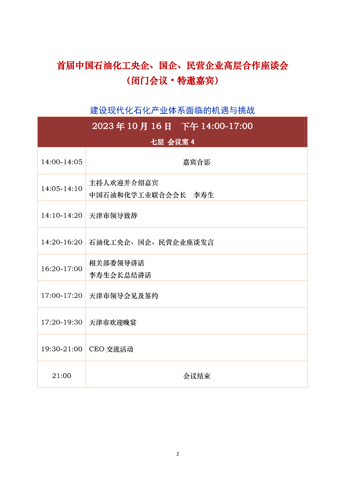 中国石油和化工民营经济高质量发展大会 会议议程