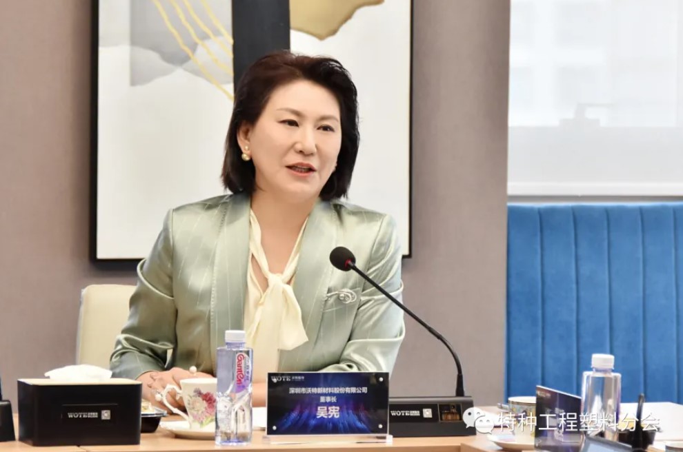 深圳市沃特新材料股份有限公司董事长吴宪分享了建设特种工程塑料分会的4点必要性和3个未来工作的重点。吴宪董事长表示,本次筹备会中行业大咖能够齐聚沃特,深感荣幸。同时她表示,虽然身上职务多、角色多、担子重,但自己仍愿意认真将分会的工作承担起来,希望未来的几年能够跟大家合力共建,将特种工程塑料的平台建设好。吴宪董事长指出特种工程塑料分会建设的4点必要性:第一,国家需要;未来的十年将是材料发展的大年,特种高分子材料发展符合国家产业链布局,更是重中之重,需要行业协会保驾护航。第二,市场需要;随着人民生活质量的提升,人们对于材料质量的要求提高,老百姓很期待能够以国产材料全面替代进口材料。第三,行业需要;行业内已经进行了几十年的深耕,有了深厚的积累,行业联动才能让行业焕发出更大的活力;希望行业内形成竞合的关系,以合作为前提,彼此促进,全力以赴将行业发展好。第四,地球健康需要;未来行业的发展将保有维护地球大健康的环保意识,对地球的健康负责,担当起环保责任。关于未来工作的重点,吴宪董事长表示,政策方面,将努力争取国家的重视,寻求政府的支持和政策的扶持;标准建立方面,将基于高质量要求,将国标、行标梳理好;知识产权方面的工作也将获得更多的关注。